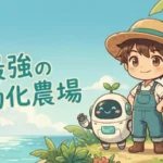 ロボットを設置すると、一定範囲内の作物の回収や鉱石の採掘を自動で行う。